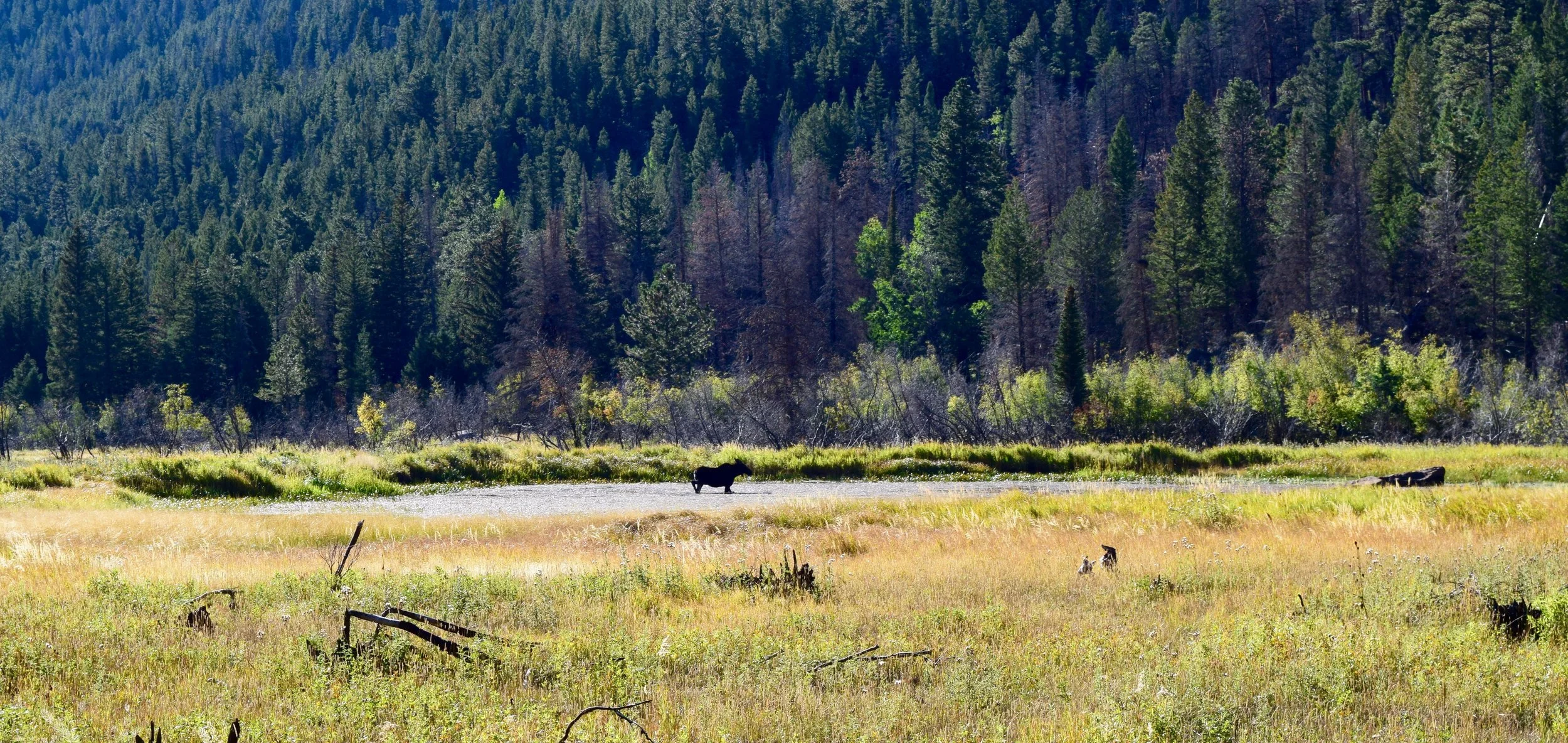 All of the reviews I read of this trail mentioned that it was perfect for wildlife spotting but I wasn't sure we'd be so lucky. Turns out I was wrong in the best way possible. We rounded a corner in the trail and looked out towards a small pond and saw a female moose hanging out eating her breakfast.
