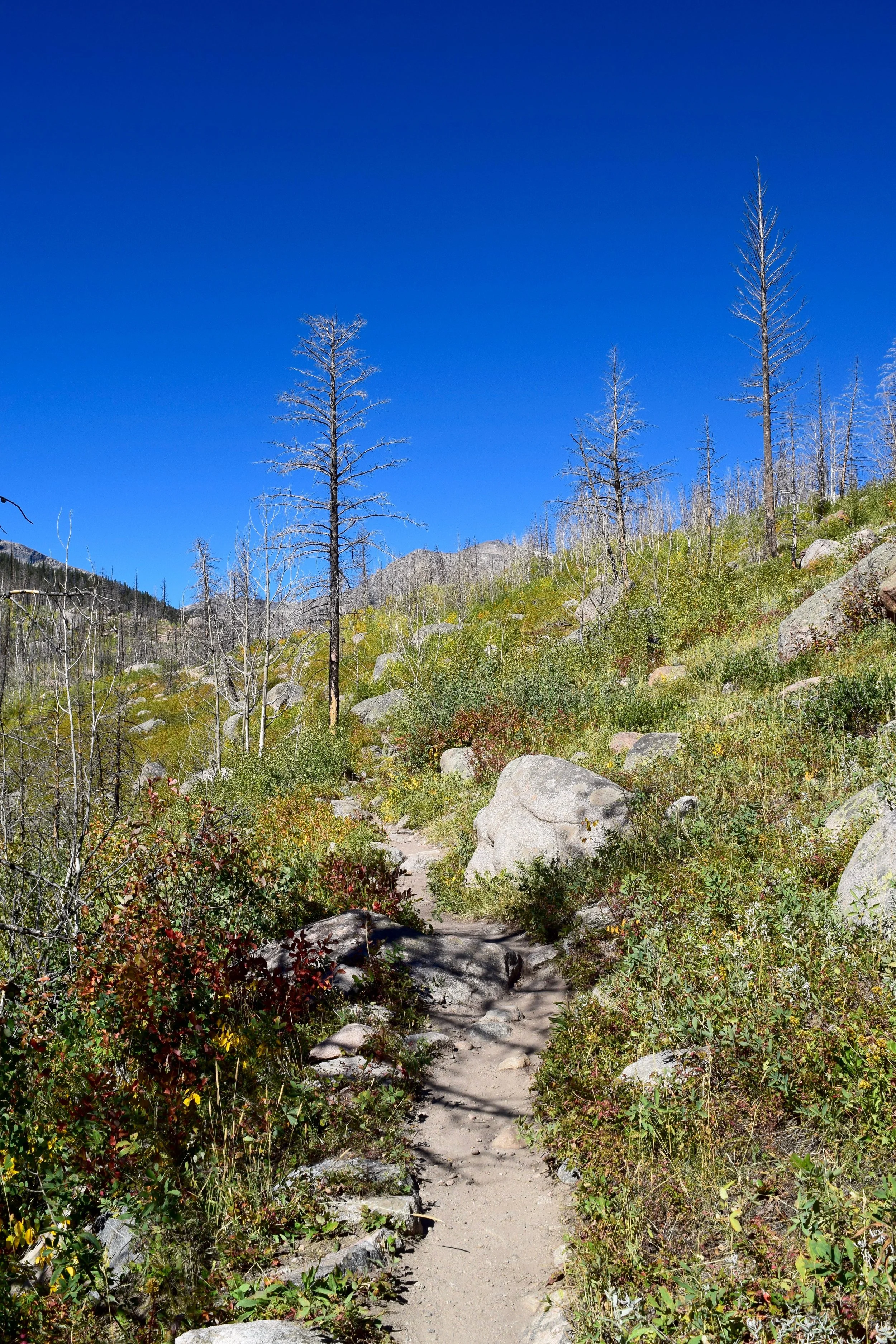 Right off the bat we were rewarded with something I've never seen in RMNP before - a coyote! He trotted through the brush and then stopped to look back at us before continuing on his way. We were giddy and couldn't wait to continue up the trail.